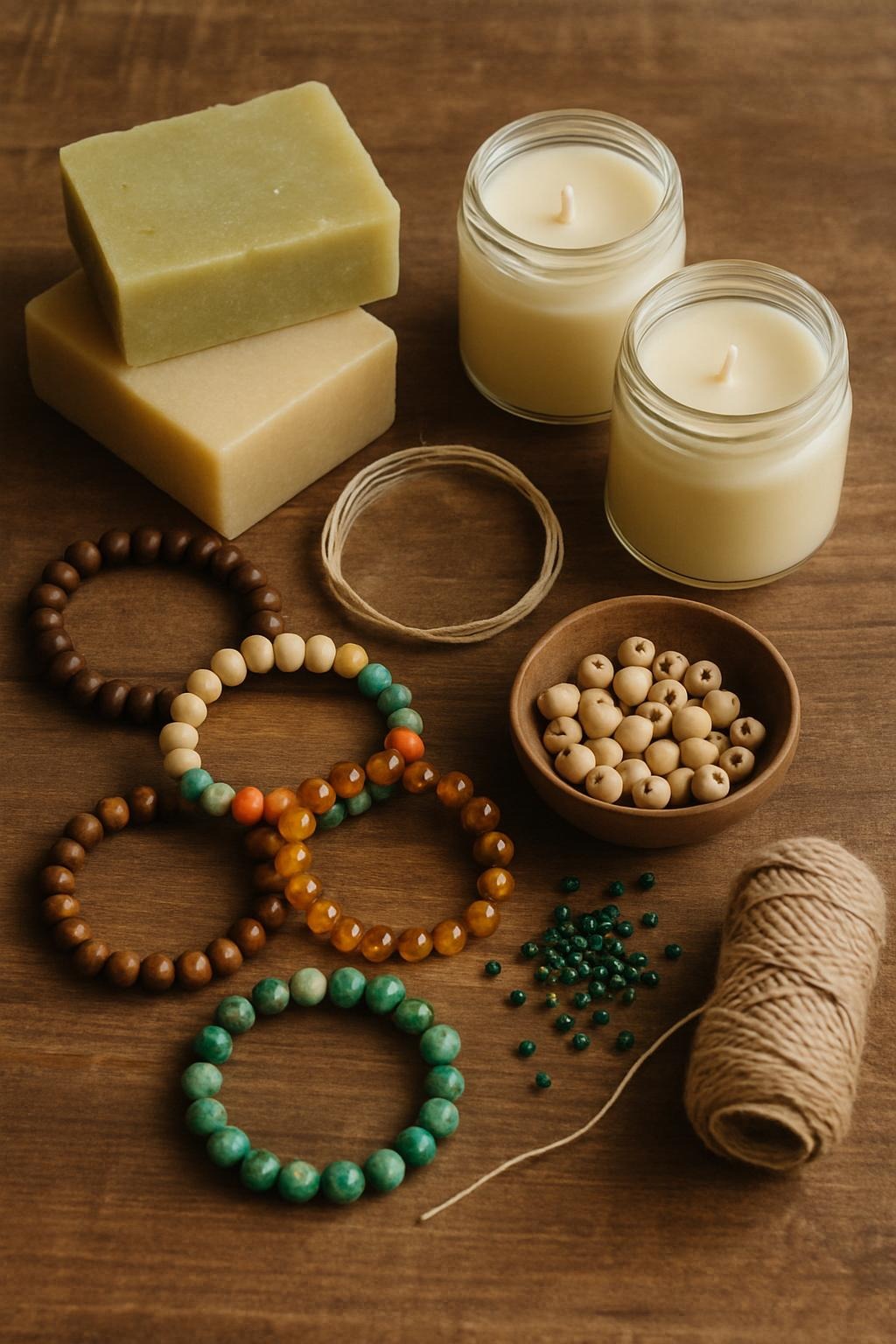 Natural soaps, scented candles, artwork and bracelets